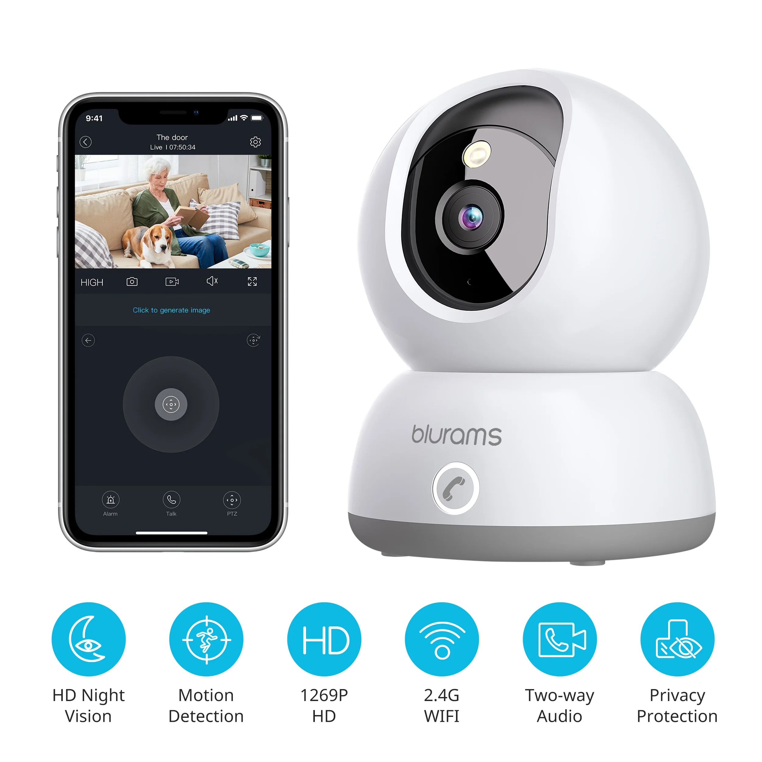 Blurams Indoor Security Camera 4MP, One-Click Call ,Two-way call, 2.4G & 5G WiFi,Home Security Camera for Dog/Baby Monitor/Elder $17.06