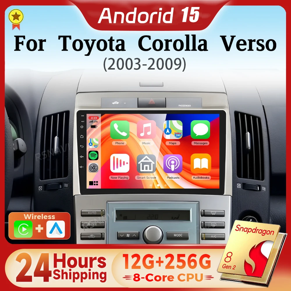 Android 15 Qualcomm Carplay Auto 2K Screen Car Radio Multimedia Player For Toyota Corolla Verso AR10 2004 - 2009 BT Snapdragon $129.26