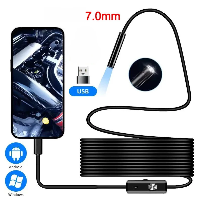 7.0MM Type-C Endoscope Camera IP67 Waterproof with 6 Adjustable LEDs USB Android Flexible Inspection Borescope for Phone PC $5.68