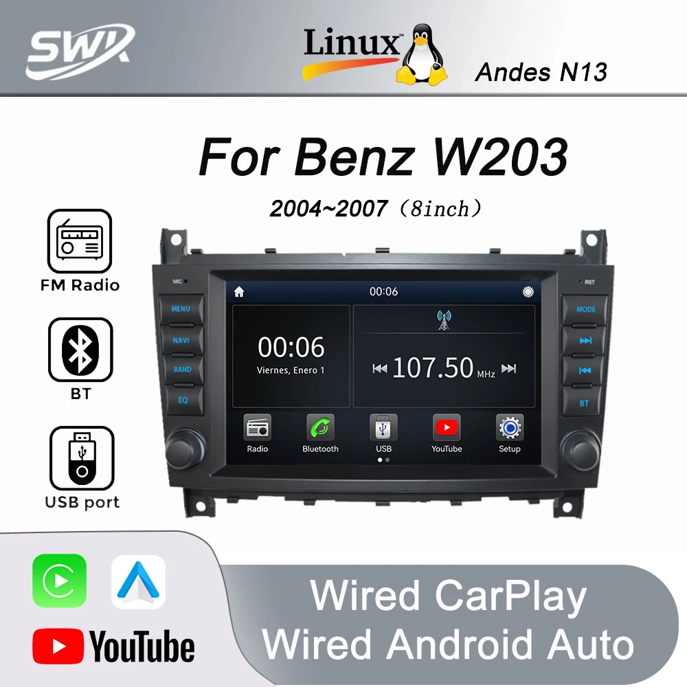 CarPlay Android Auto”8 For Benz W203 Linux System Radio Bluetooth 5.1 Car player FM PSD USB Mirror-link Plug and Play $113.55