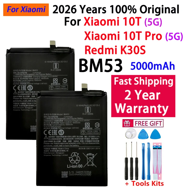 2026 Years BM53 Original Battery For Xiaomi 10T / 10T Pro Redmi K30S 10TPro Mi 10T Mi10T 5000mAh Phone Battery Batteries $12.78
