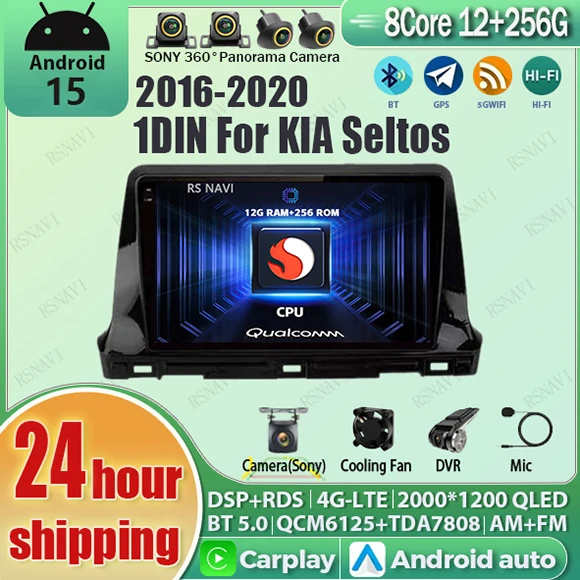 Android 15 Carplay Auto Qualcomm 2K QLED Screen Car Radio Player For 1DIN For KIA Seltos 2016-2020 GPS Multimedia Wifi Stereo BT $123.85