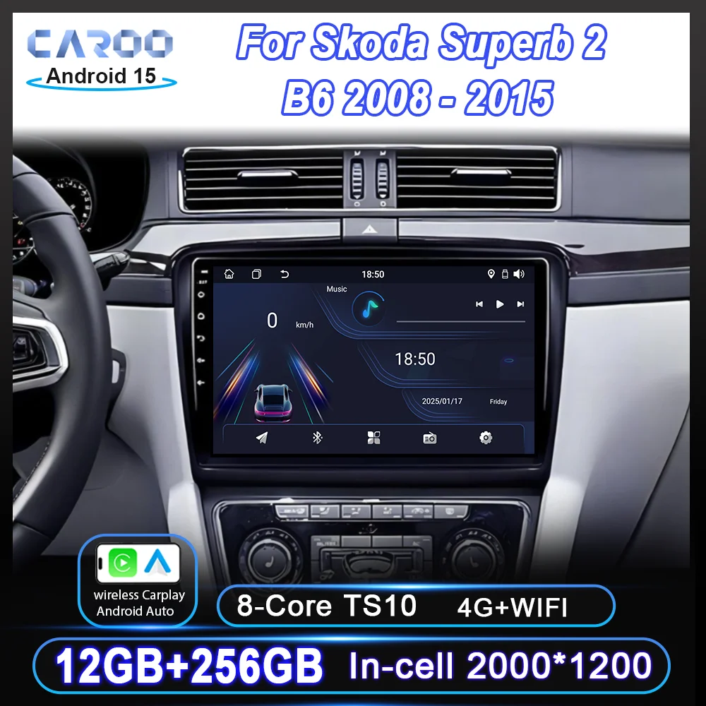 Car Android 15 Radio Stereo For Skoda Superb 2 B6 2008 - 2015 Auto Multimidia Video Player QLED Touch Screen Carplay NO 2DIN DVD $76.36