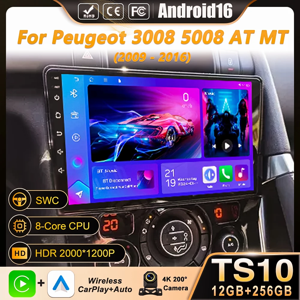 Android 16 For Peugeot 3008 5008 AT MT 2009 2012 -2016 Multimedia Car Radio Video Player Navigation GPS wireless AUTO WIFI 4G BT $83.87