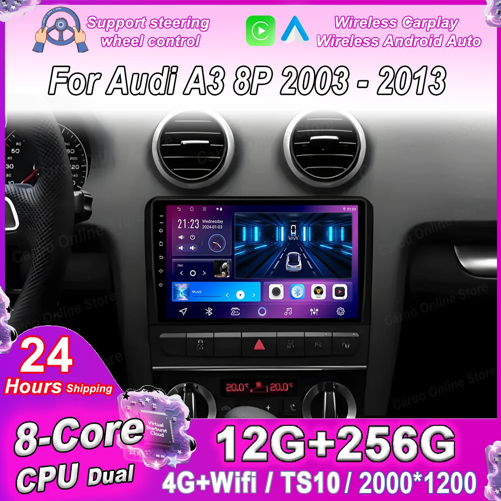 Android 16 Car Radio Stereo Head Unit For Audi A3 8P 2003-2013 Auto Multimidia Video Player GPS Navigation Carplay NO 2din DVD $71.34