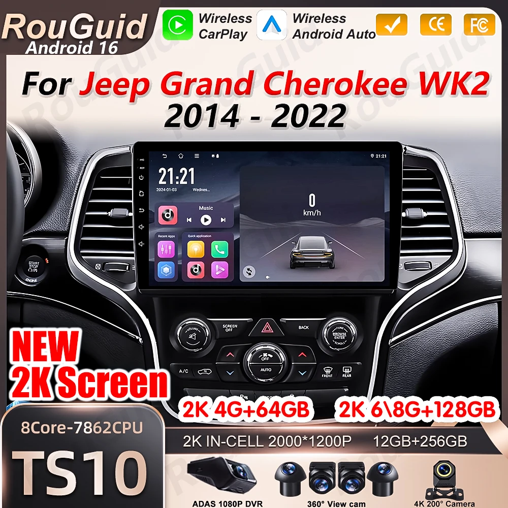 Android 16 Car Radio For Jeep Grand Cherokee WK2 2014 2015 2016 2017 2018 -2022 Carplay Video Multimedia Player BT Stereo Screen $85.80