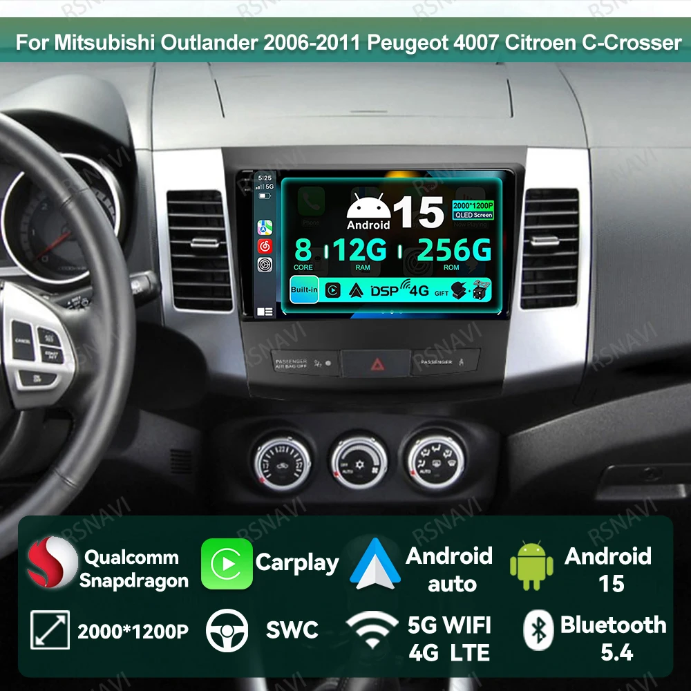 Car Radio Android 15 For Mitsubishi Outlander 2006-2011 Peugeot 4007 Citroen C-Crosser 4G LTE Qualcomm Navigation BT DSP Stereo $129.32