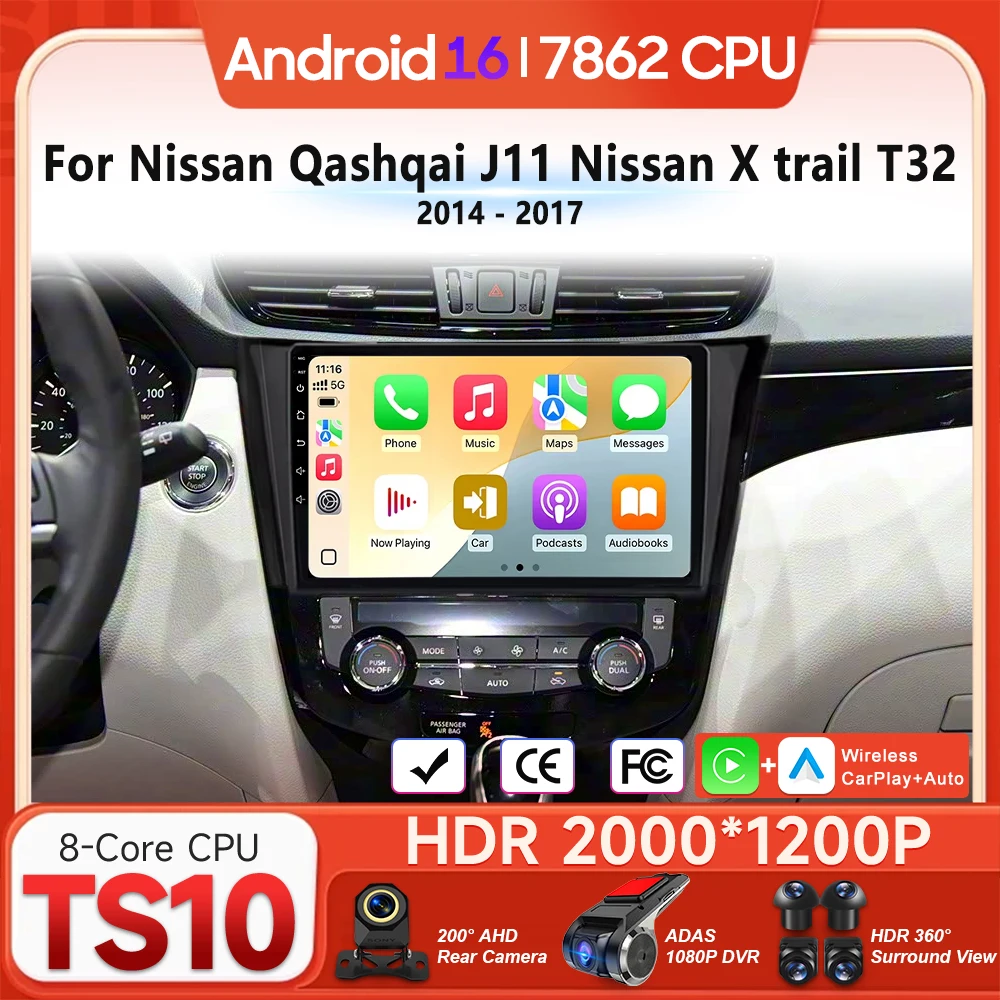 Android 16 For Nissan Qashqai J11 Nissan X trail T32 2014 - 2017 Car Radio Multimedia Player Carplay Stereo Video Navigation DSP $82.56