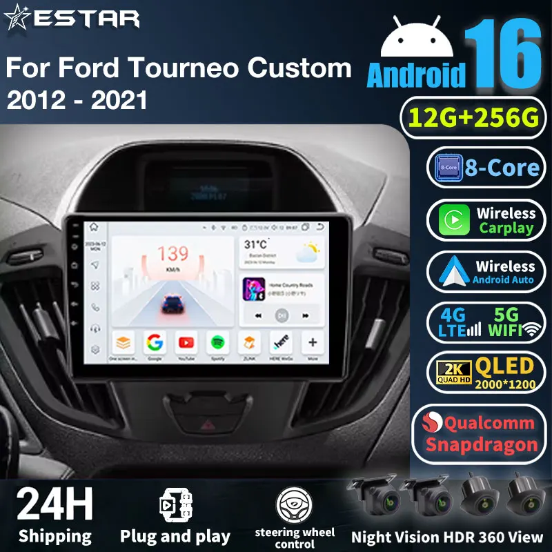 Android 16 Carplay Auto 2K Screen Multimedia Player Car Radio For Ford Tourneo Custom 1 I Transit 2012 - 2021 Autoradio Stereo $143.15
