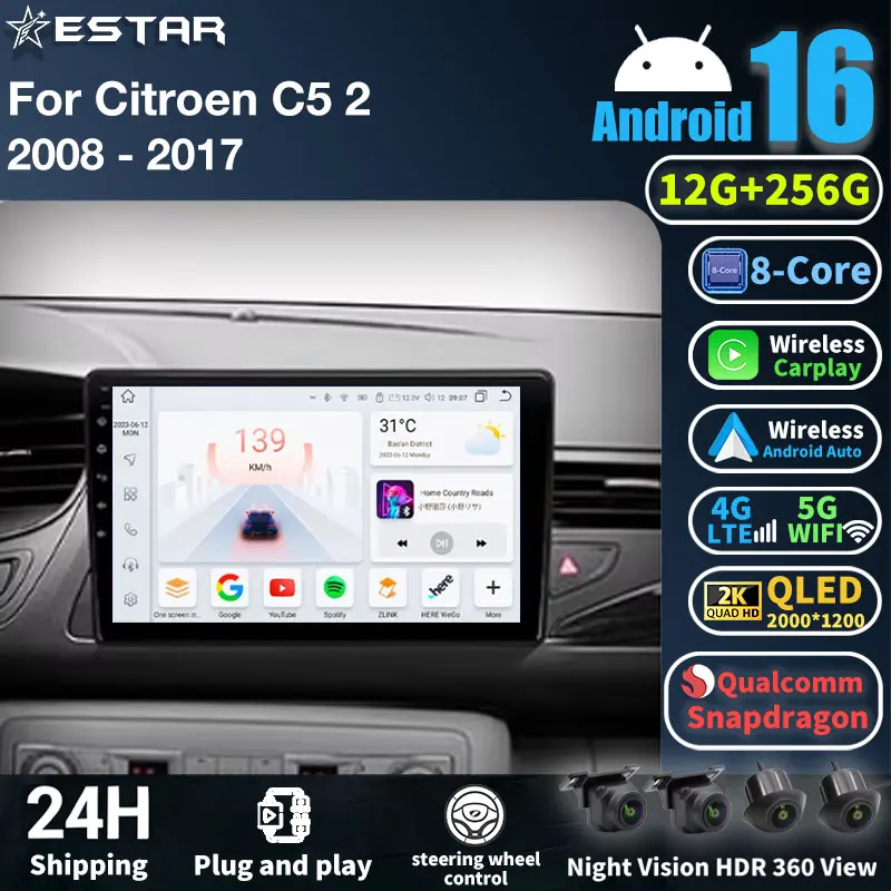 For Citroen C5 2008 2009 2010 2011 2012 2013 2014-2017 Multimedia Player Carplay GPS Android 16 Car Radio Navigation No 2Din DVD $142.39