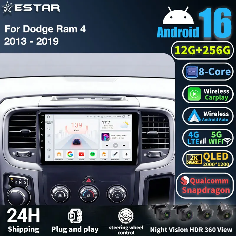 Android 16 Car Radio For T Dodge Ram 1500 2500 3500 2013-2018 Multimedia Stereo Video Player WiFi 4G Carplay Auto GPS Navigation $148.97
