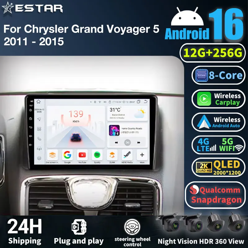 Android 16 Carplay Car Radio For Chrysler Grand Voyager 5 For Dodge Grand Caravan 2008 2011-2020 GPS Multimedia Stereo Head Unit $148.61