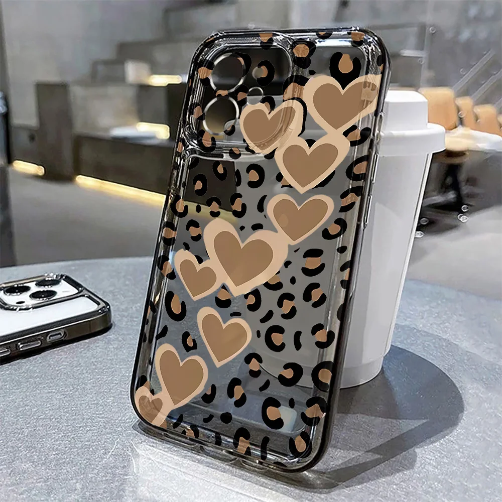 Leopard Print Clear Phone Case For iPhone 15 Case iPhone 16 13 11 14 12 17 Pro Max Air 16e 7 Plus XR SE Shockproof Bumber Cover $4.26