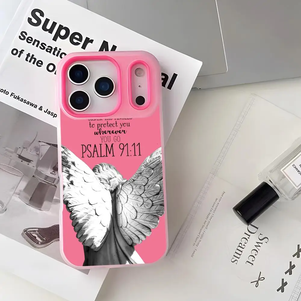 Angel Psalm Christian Quote Phone Case For iPhone 17 16 15 14 13 12 11 Pro Max Plus Mini Case Clear Jelly Shockproof Soft Cover $4.80
