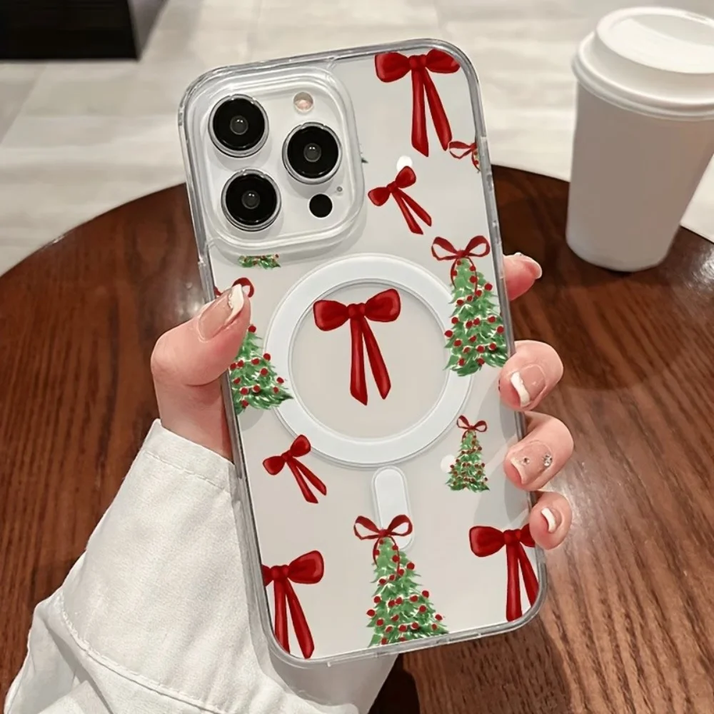 Transparent Phone Case For iPhone 17 16 15 14 13 12 11 Pro XS Max XR Plus Mini Air 17e 16e Magsafe Bowknot Christmas Tree Cover $3.63