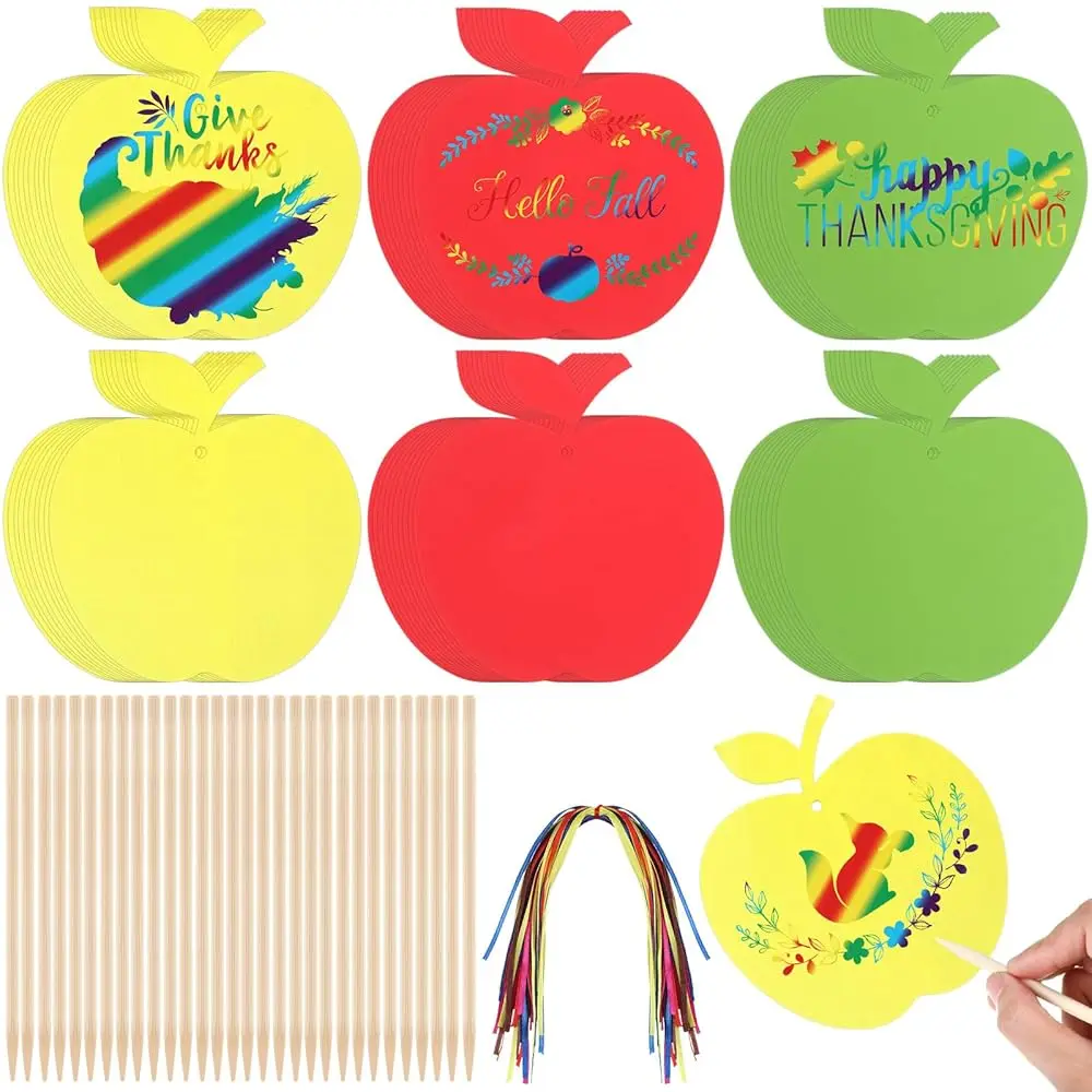 60 Set Apple Crafts for Kids Bulk Apple Scratch Crafts with Ribbon Wooden Stylus Graduation Hanging Ornaments for Back to Sc $18.47