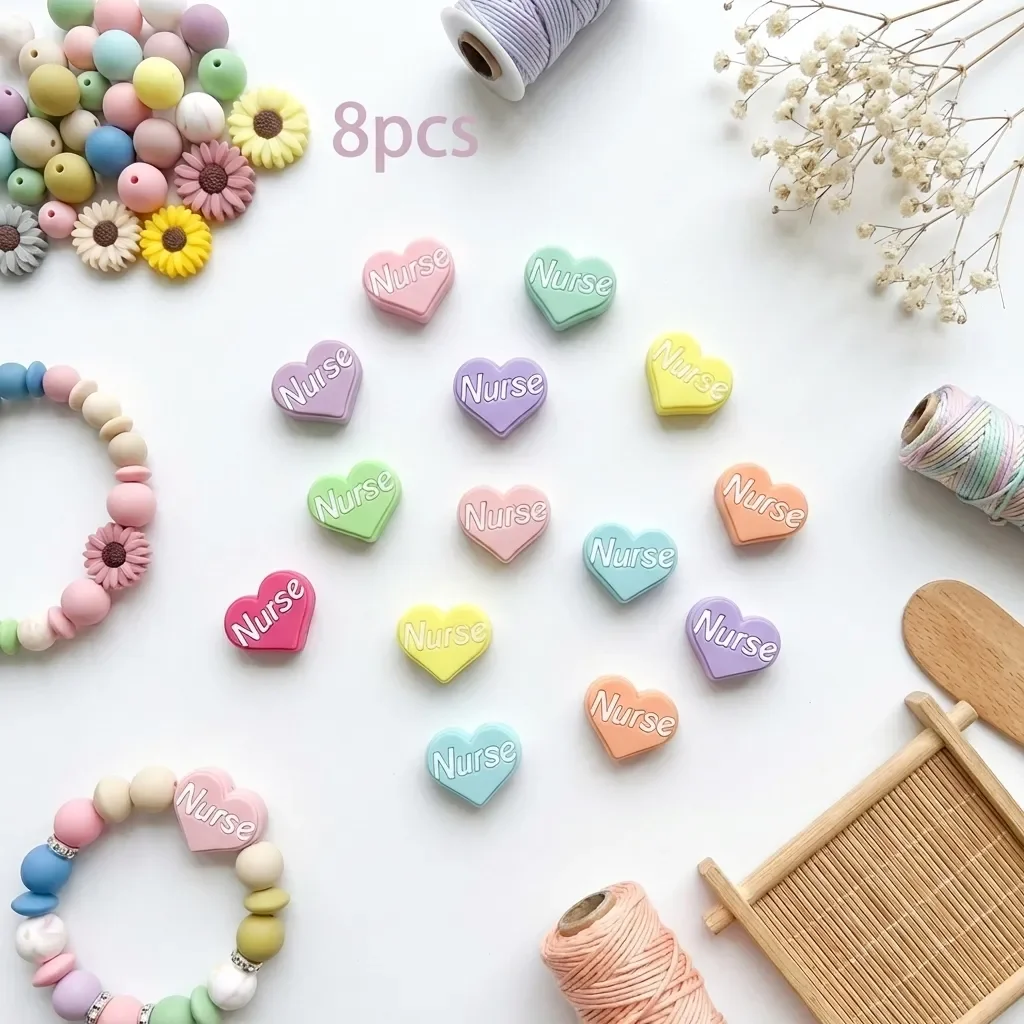 8-Color Nurse Heart-Shaped Soft Silicone Focal Beads, Perfect for Crafts & DIY Projects, Multifunctional Design for Various Appl $4.43