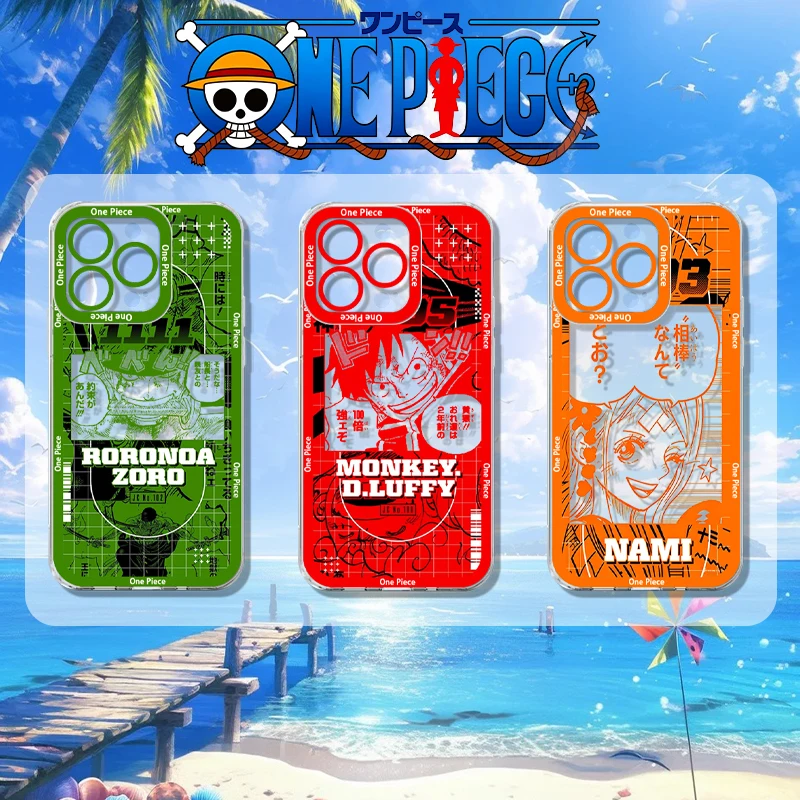 O-One Piece Monkey D. Luffy Roronoa Zoro Nami Case for iPhone 14 15 16 17 Pro Max Air 17E 12 13 11 ProMax Transparent Back Cover $1.94