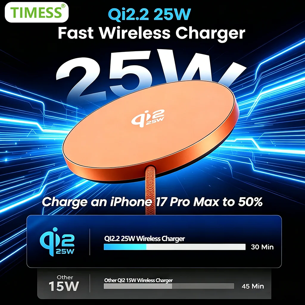 TIMESS QI2 25W Fast Wireless Charger For IPhone 17 16 15 14 13 12 PROMAX For Airpods 4 3 2 Pro 2-IN-1 Charging Station Stand Pad $13.32