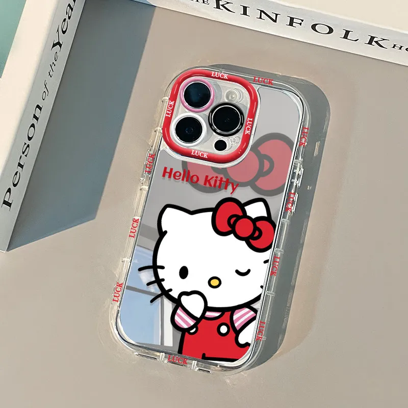 Cute Red Hello Kitty Mirror Phone Case For iPhone 17 Pro Max Case 7 8 15 14 16 Plus 13 12 11 Pro X XS XR 16E 17 Air 13 Y2K Cover $2.77
