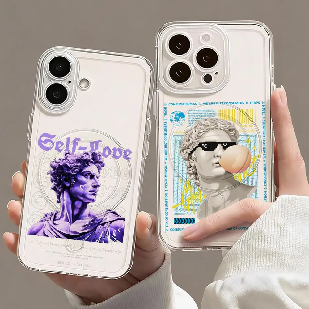 Graffiti Great Art Aesthetic David Phone Case For iPhone 17 16 15 14 13 Pro Max Plus Magnetic Clear Case Wireless Charging Cover $5.04