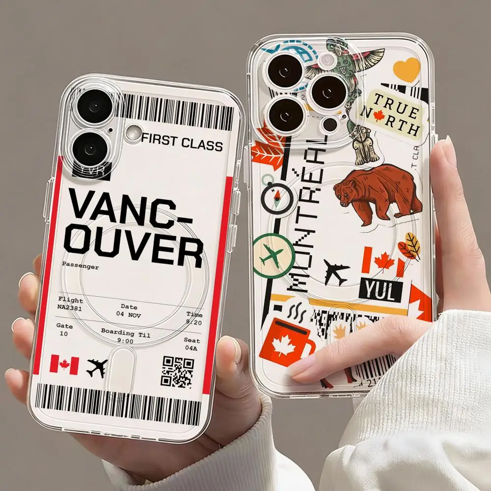 plane travel ticket canada Phone Case Magnetic Clear Case for iPhone 17 16 15 14 13 12 Pro Max Plus Slim Wireless Cover $5.04