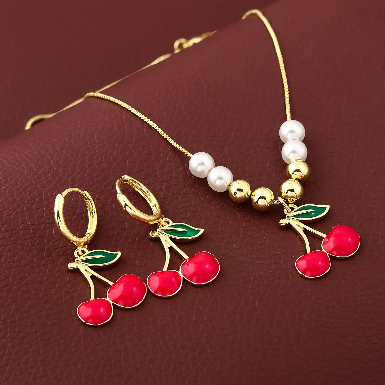 Summer Delicious Fruits Apple Strawberry Cherry Pendant Necklace Earrings Set Fashion For Woman Female Casual Holiday Jewelry $1.00