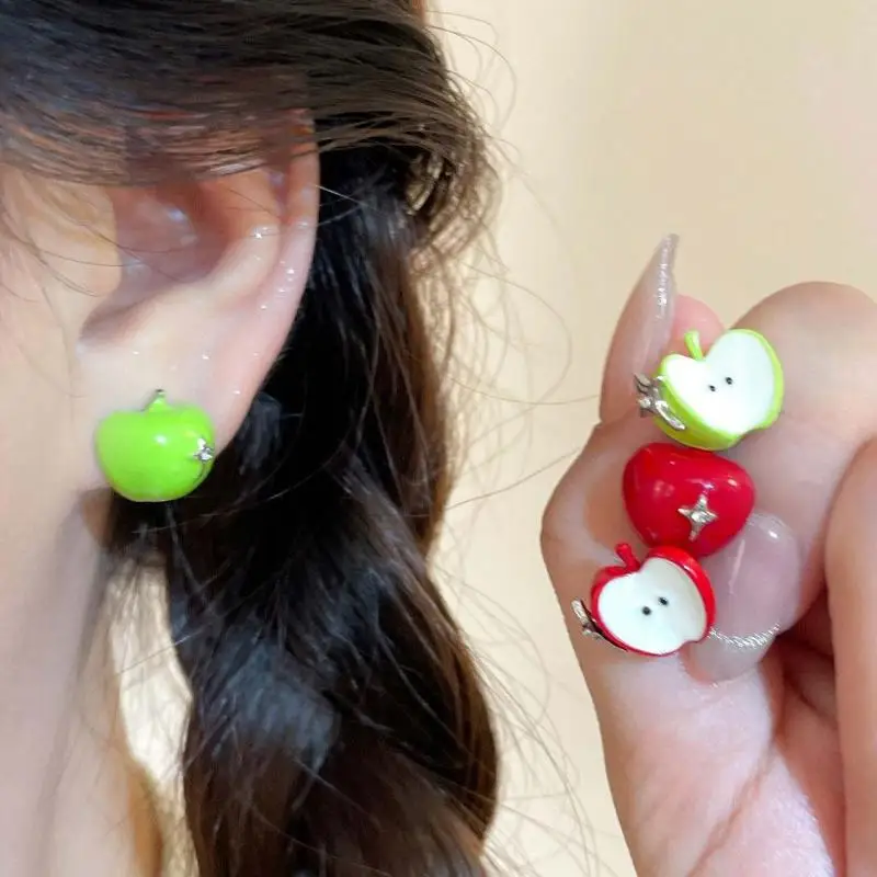 Sweet Fresh Red Green Apple Stud Earrings for Women Girls Y2K Cute Dripping Oil Fruits Earrings Fashion Jewelry Acceessries Gift $1.00