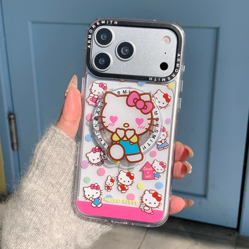 Sanrio Hello Kitty Magnetic Grip Holder Magsafe Wireless Charge Phone Case For iPhone 17 16 15 14 13 12 11 Pro Max Hard Cover $2.65
