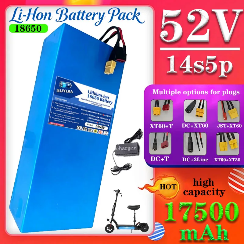 14S5P 52V 17500mAh 18650 Lithium Battery with BMS for 1500W Appliances and Transportation Equipment - Rechargeable Battery $145.74