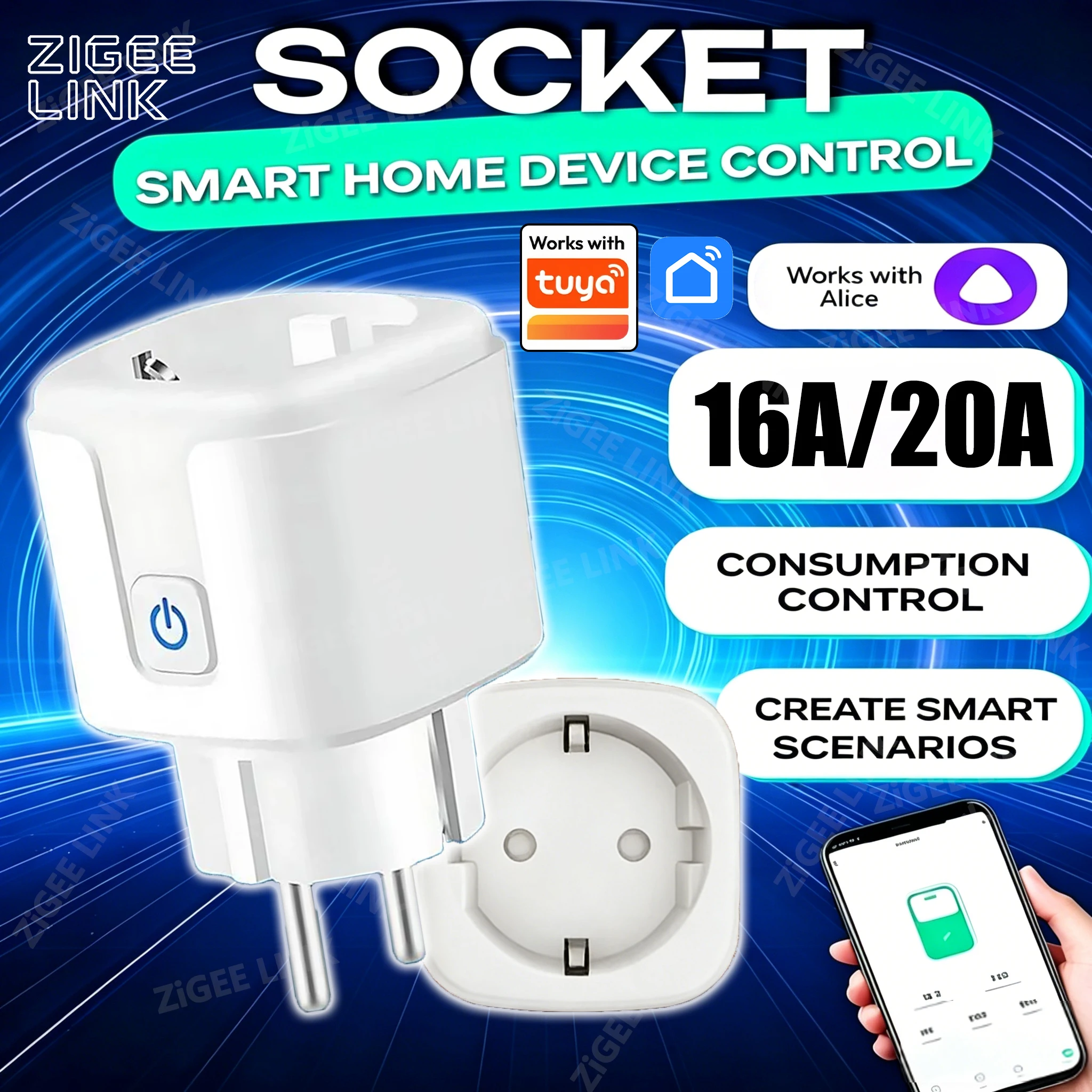 Smart EU Plug 16A/20A Tuya WiFi Zigbee Socket with Power Monitoring Timer Voice Control for Appliance Management Alexa Google $8.44