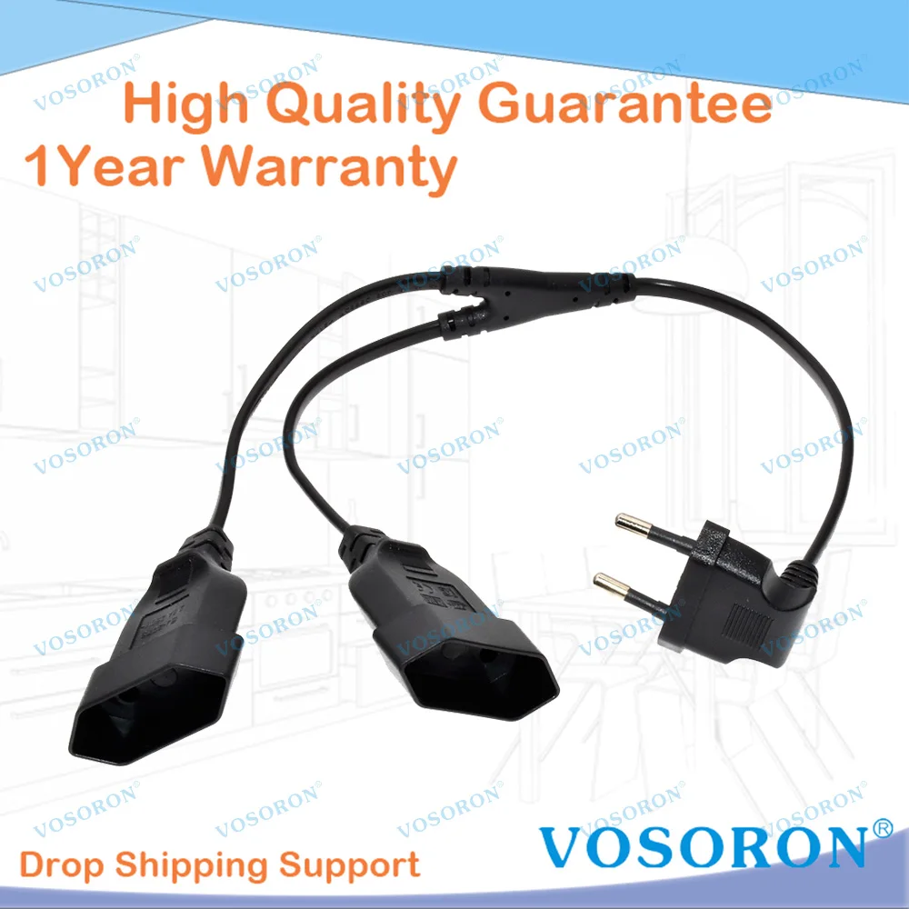 EU CEE7/16 90 Degree Male to Female Dual Output,2 Ways Outlet Extension Cord European 2 Prong M/F Power Splitter Cable $7.27