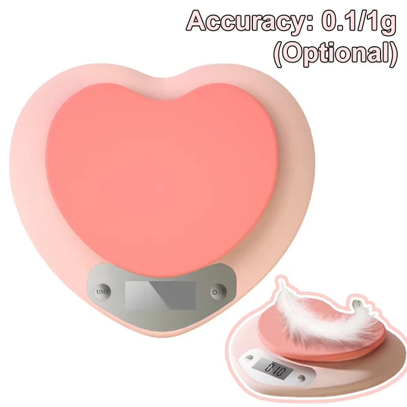 Digital Kitchen Scale Pink Heart-shaped Portable High-Precision Scale 5kg/1g 3kg/0.1g LCD Display Electronic Scale Battery Power $13.23
