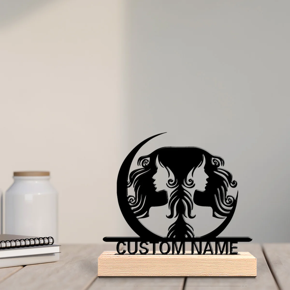 1pc Stylish Personalized Custom Gemini Metal Statues Botanical Wooden Base Desk Art for Nature Lovers, Office, Zen, Calm Spaces $5.89