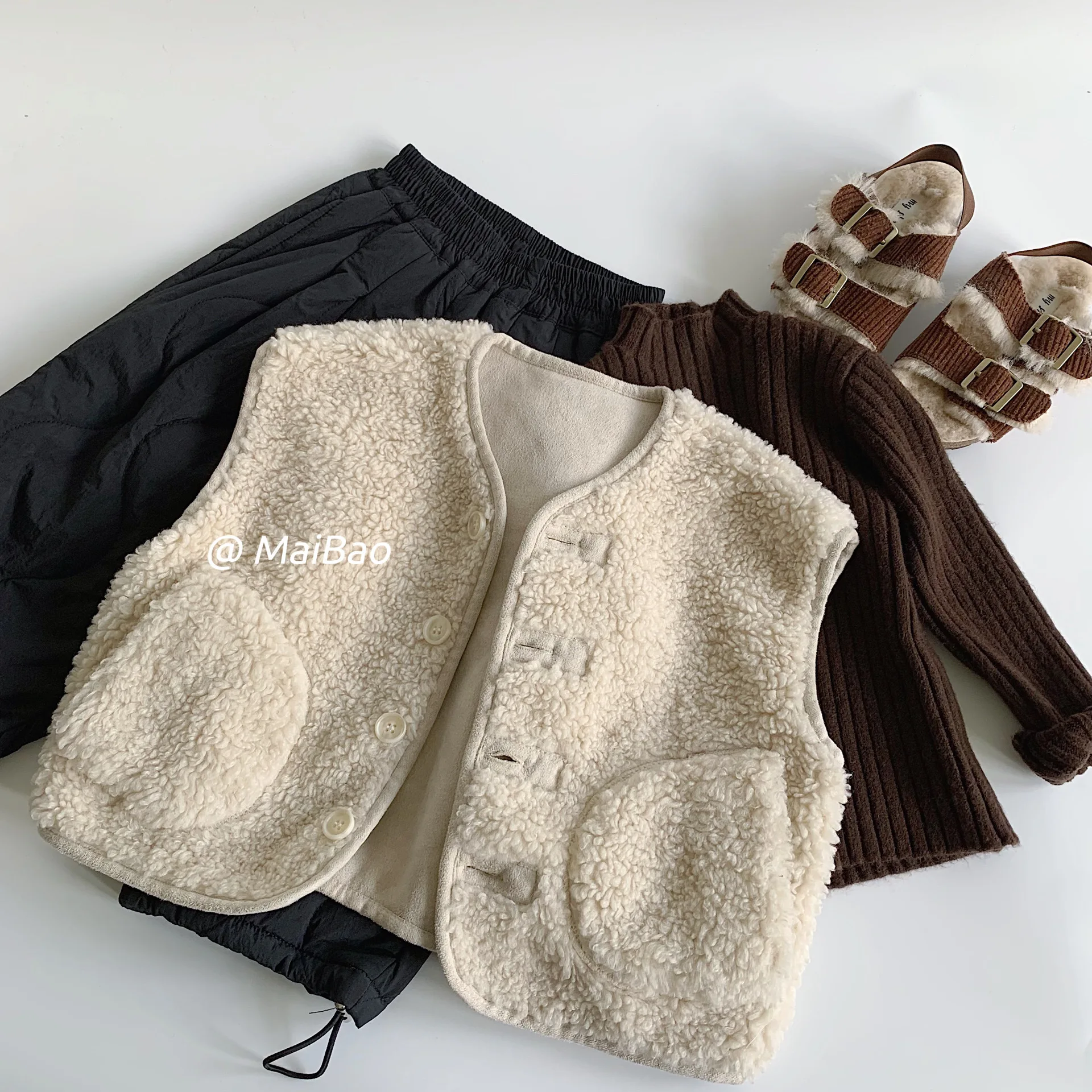 Children's Vest 2025 Winter New Style for Boys and Girls, Western-style Lamb Wool Worn Outside with Baby Sleeveless Vest $7.96
