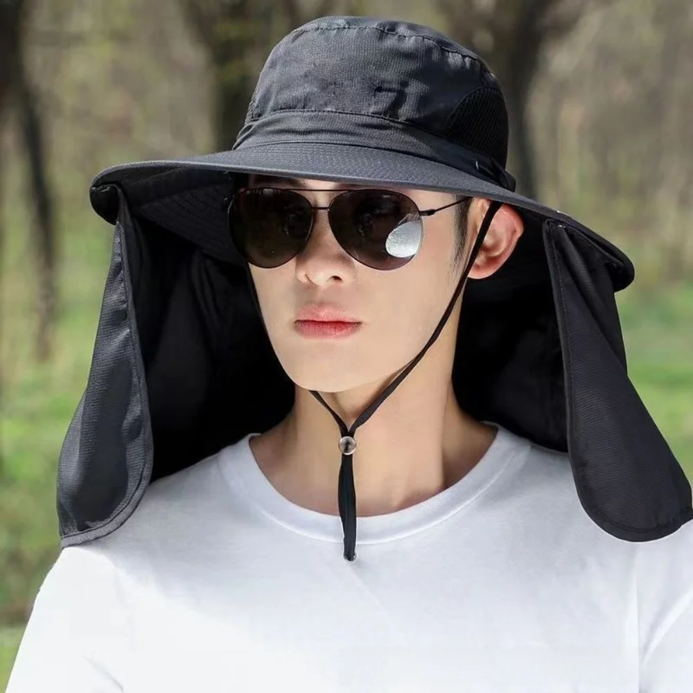 Removable Cloth Men Sun Hat Neck Protection Big Brim Summer Bucket Hat Ultraviolet-proof Removable Shawl Fisherman Hat Women $8.39