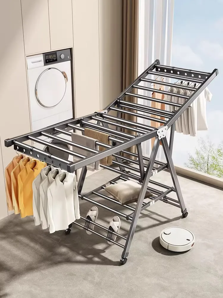 Floor-Mounted Balcony Clothes Drying Rack Multi-Functional Simple Design for Babies Clothes And Quilts Drying Indoor And Outdoor $186.75