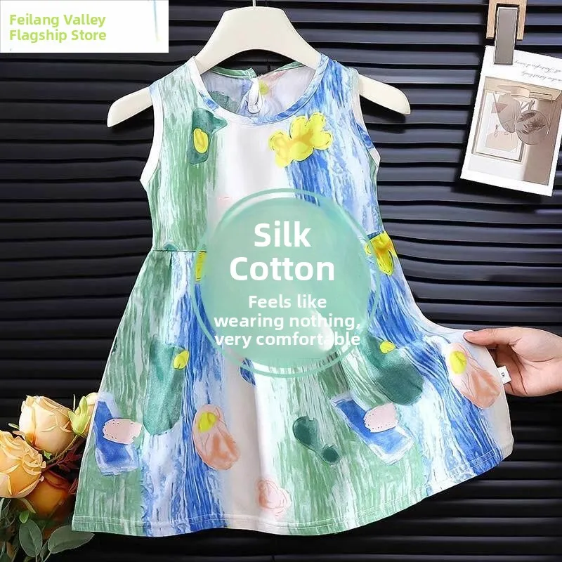 Girls Summer New Style Sleeveless Princess Dress Thin Fashion Baby Summer Clothes Silk Dress Children's Clothing Casual Style $10.13