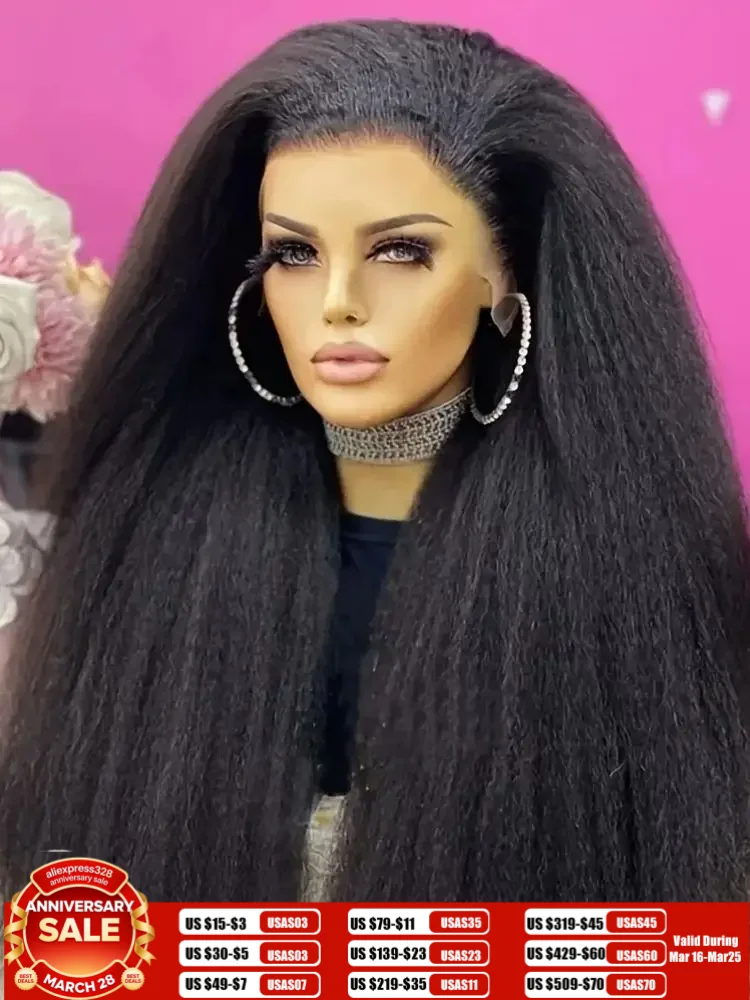Afro Kinky Straight Lace Front Wigs Soft As Human Hair Pre Plucked With Baby Hair 210% Density Yaki Straight Transparent HD Lace $26.55