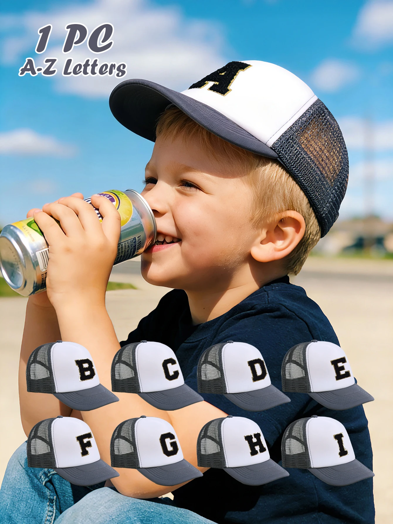 1pc Gray Hat With 26-Letter Pattern, Kids Cap For Boys And Girls, Baseball Cap, Sun Visor Hat, Suitable For Outdoor Activities A $5.58