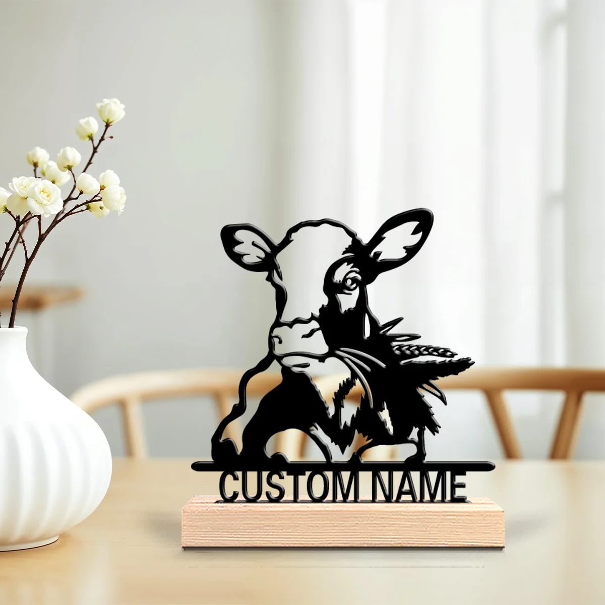 1pc Cute Personalized Custom Cow Metal Statues Desktop sculpture with wooden base suitable for office and desktop decoration $11.35