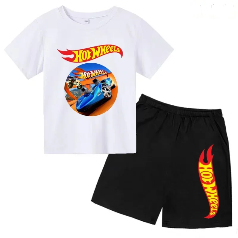 A set of casual clothing suitable for boys and girls, featuring short-sleeved T-shirts with cartoon designs of summer sports car $12.48