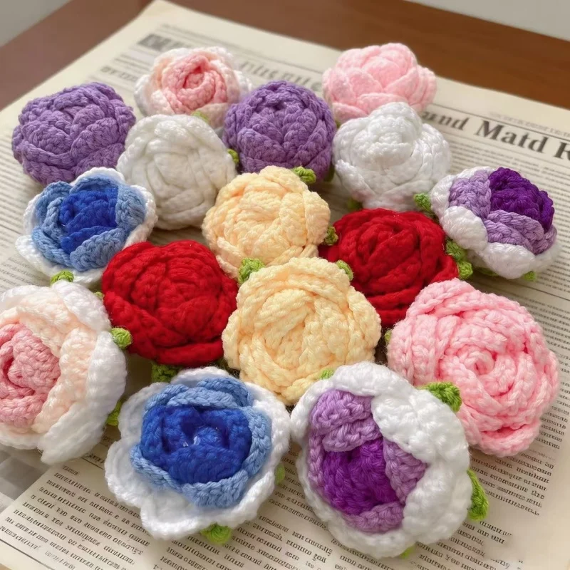 5/10pc Crochet Roses Heads Handmade Knitting Artificial Flowers DIY Bouquet For Vase Wedding Home Table Decor $6.04