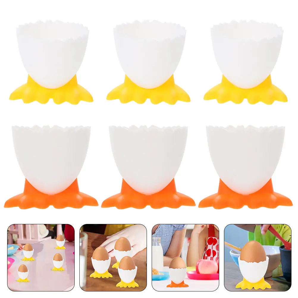6Pcs Adorable Cartoon Egg Cups for Babies Toddlers Breakfast Hard-Boiled Eggs Holder Kitchen Dining Room Baby Food Tableware Egg $7.60