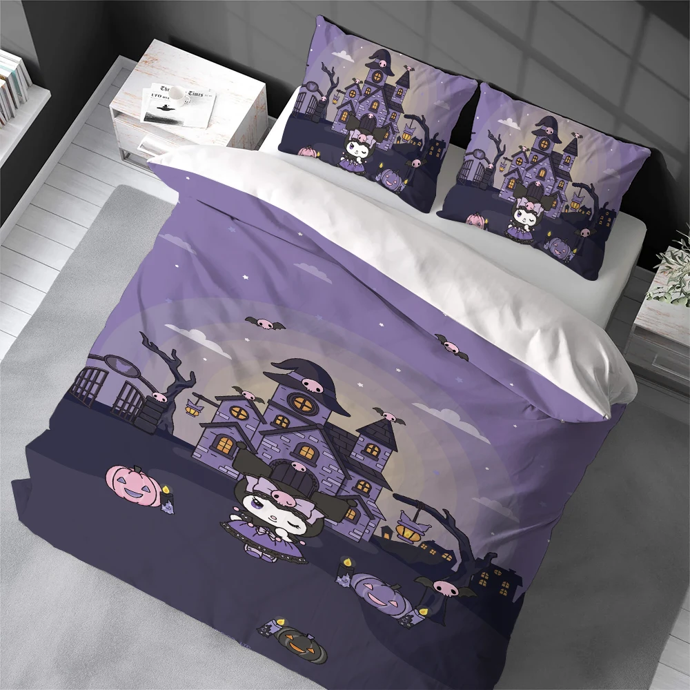 Kawaii K-Kuromi Duvet Cover Set Home Style Bedding Soft Laundry Cotton Bed 3 Piece Set Student Dormitory Gift $28.84