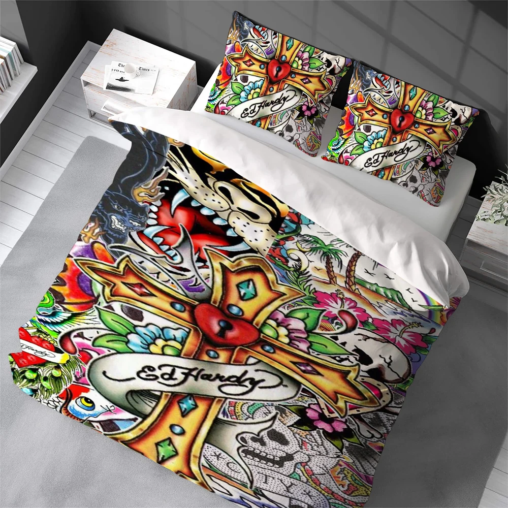 Fashion E-Ed H-Hardy Duvet Cover Set Home Style Bedding Soft Laundry Cotton Bed 3 Piece Set Student Dormitory Gift $46.97