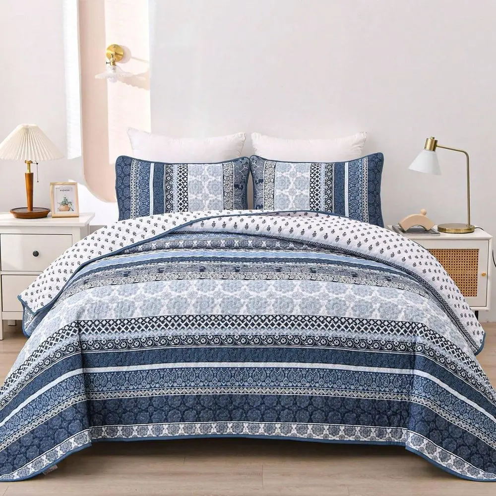Pieces Boho Quilt Set Queen King Size,Navy Blue Bohemian Quilt Sets, Lightweight Summer Bedspread Coverlet Bedding Set For All S $21.06