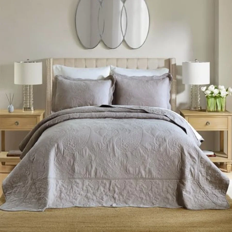 Cotton Jacquard Bedspread Quilt Bedding Sets Size 3 Pieces Reversible Comforters with Ruffle Edge Coverlets for All Seasons Pai $105.54