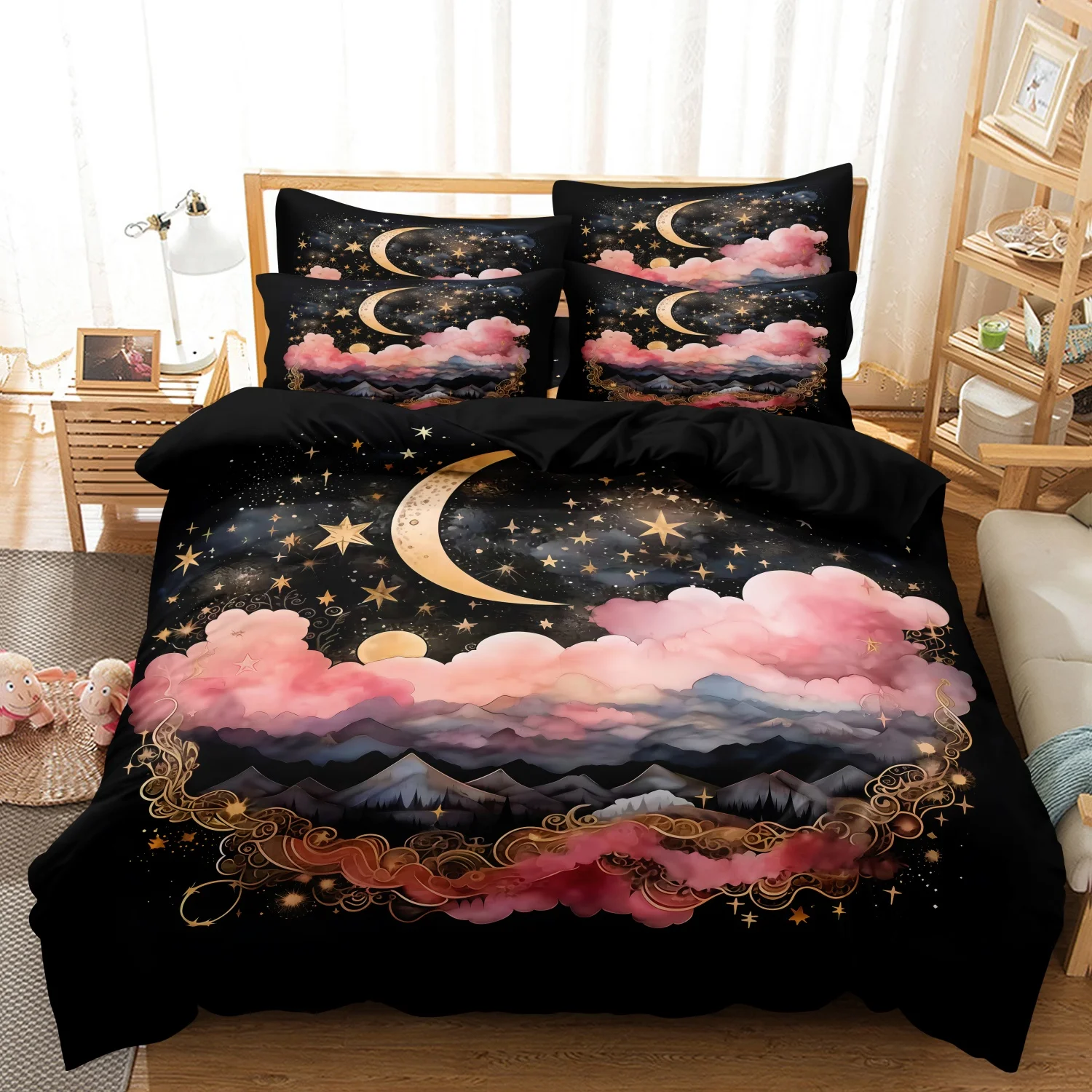 3Pcs Moon Phases The Sun & Starry Sky Colorful Cloud Pattern Duvet Cover Bedding Set For Bedroom Guest Room Dorm Decor $29.97