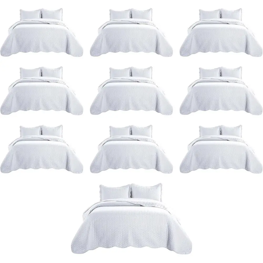 Wholesale 10-Piece Twin Size Quilt Bedding Set for Hotels and Guest Rooms - Lightweight Reversible Microfiber White Quilts $319.46